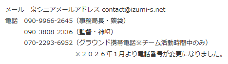横浜泉シニアについてのお問い合わせは、以下までお願いいたします。