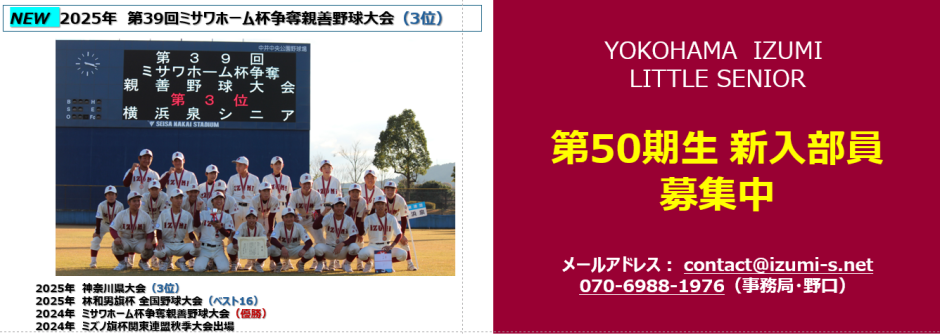 1/11(土)、1/19(日) 横浜泉シニア 特別体験会開催!!
